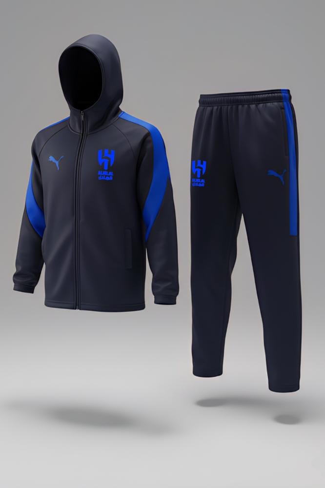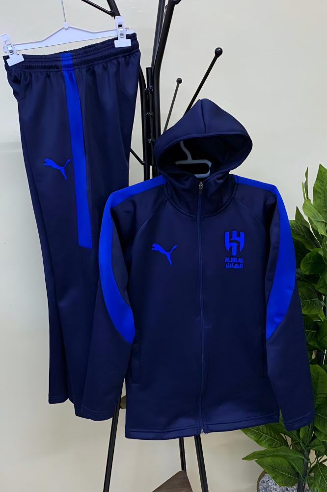 طقم الهلال بتصميم الزي الأحتياطي بلوفر شتوي بشعار نادي الهلال مع سروال طويل اسود للكبار والصغار