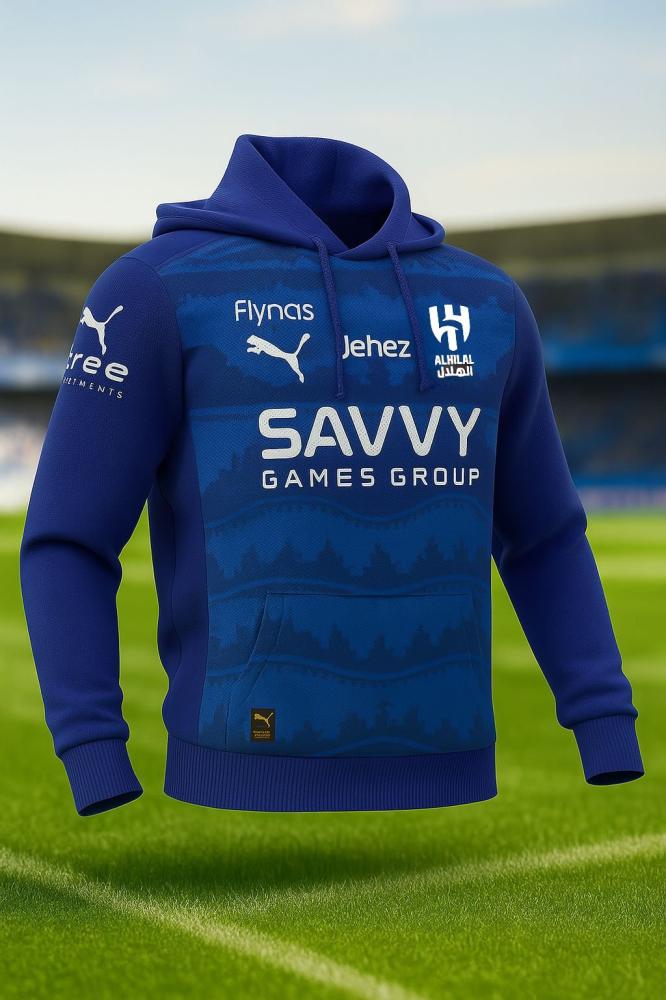 بلوفر شتوي بشكل تيشرت نادي الهلال الأساسي لموسم 2025-2026