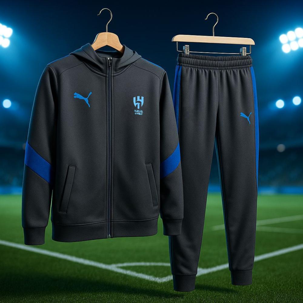 تميز بطقم شتوي بشعار نادي الهلال جاكيت مع سروال طويل